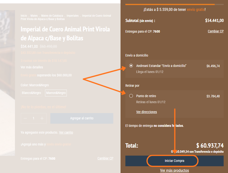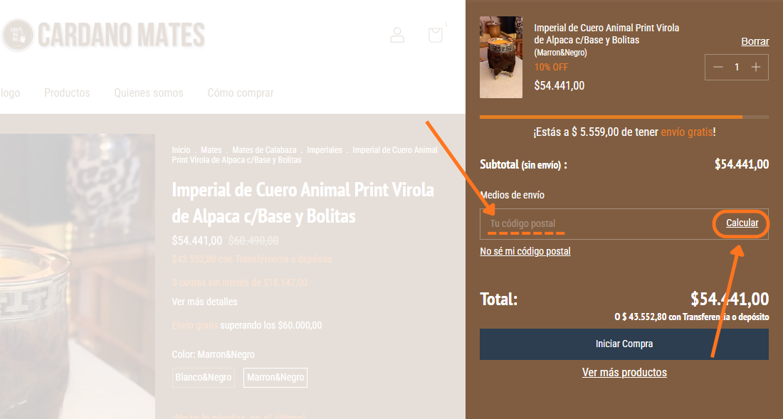 4. Completá tu código postal, clickeá en "Calcular" y elegí el medio de entrega que más cómodo te quede: